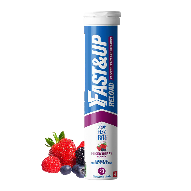 • Fast&Up Reload Effervescent Tablets in Mixed Berry are your go-to solution for instant hydration and recovery. Each effervescent tablet is expertly formulated to include a perfect blend of electrolytes, vitamins, minerals, and antioxidants, ensuring swift replenishment during or after physical activity. This hypotonic drink is designed to replace lost fluids and maintain fluid balance, making it ideal for athletes and active individuals alike.